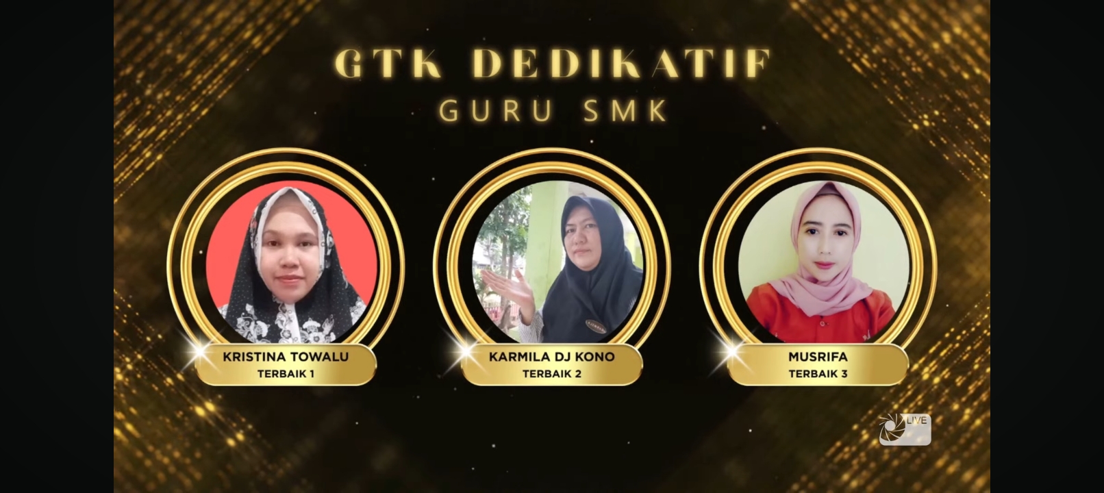 Kebanggaan SMKN 1 Paguyaman semakin lengkap dengan prestasi yang diraih oleh salah satu tenaga pendidik terbaik, Ibu Karmila DJ. Kono, S.Pd. Beliau berhasil meraih Terbaik 2 dalam Kategori GTK Dedikatif Guru SMK.
